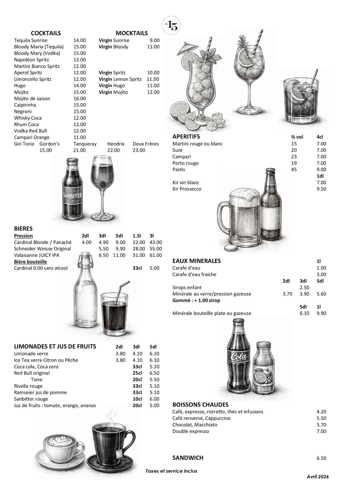 Téléchargez notre carte des autres boissons